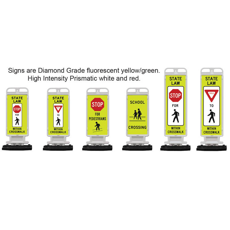 - Crosswalk signs are yellow/green diamond grade, red and white are high intensity prismatic